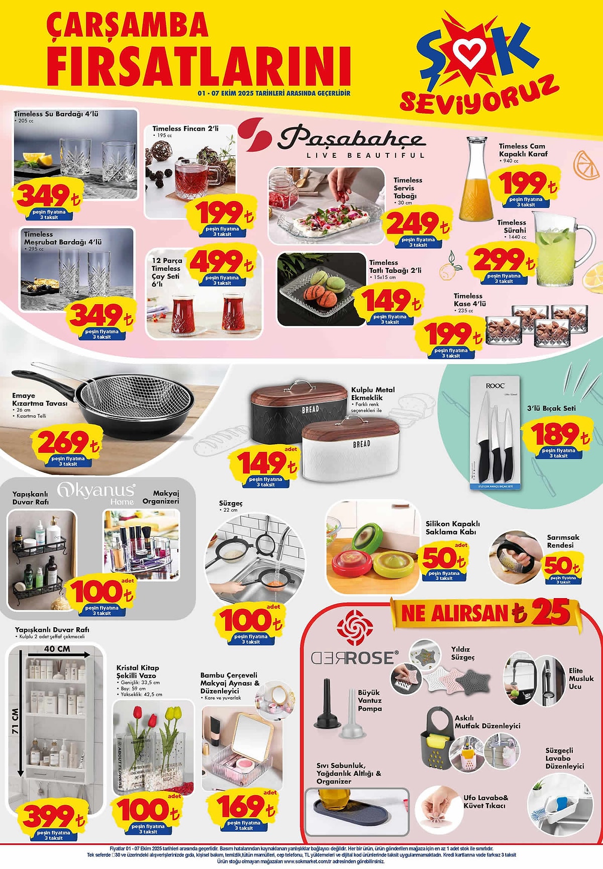 Şok Market, Ekim ayının ilk haftasında hem gıda hem de ev ihtiyaçlarında büyük indirimler sunuyor. 1-7 Ekim 2025 tarihleri arasında geçerli olacak kampanya; çay, kahve, temel gıda, temizlik ürünleri, küçük ev aletleri ve tekstilde cazip fiyatlar ile dikkat çekiyor.